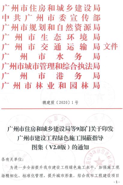 廣州市住房和城鄉建設局等9部門關于印發廣州市建設工程綠色施工圍蔽指導圖集(V2.0版)的通知